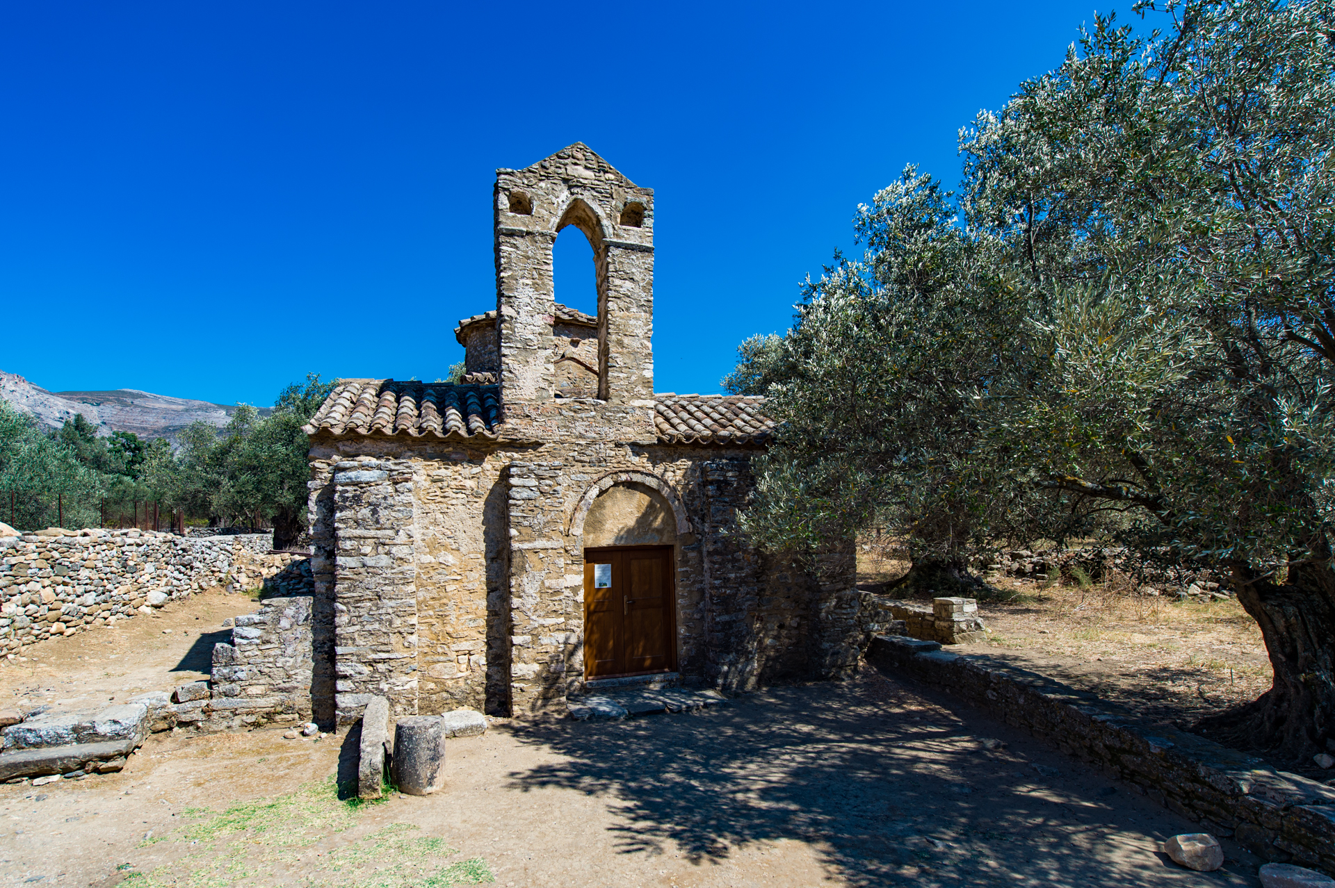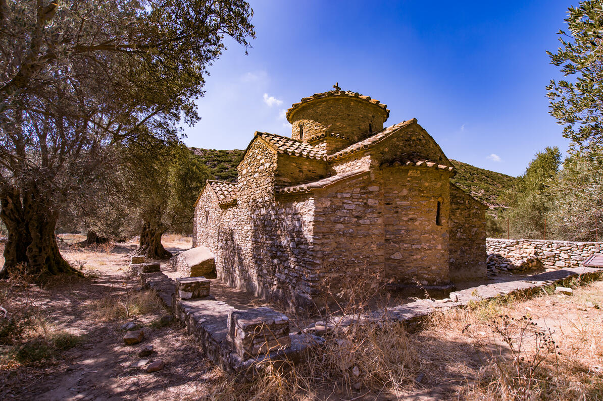 Auf einer mit Olivenbäumen und Obstbäumen bepflanzten Stelle auf dem Land von Tragäa zwischen den Dörfern Chalki und Monitsia befindet sich heute eins der wichtigsten Monumente von Naxos, die Kirche Agios Georgios Diasoritis (Heiliger Georg Diasoritis).