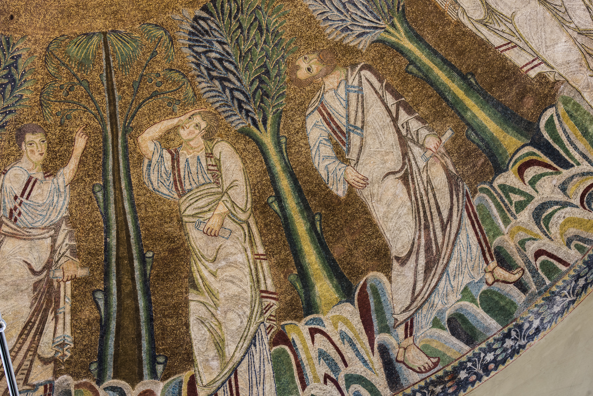 Aus dem Ende des 9.Jhs stammt die grandiose Darstellung Christi Himmelfahrt an der Kuppel. Christus ist im Zentrum eines Kreises dargestellt, welchen fliegenden Engel stützen. Niedriger sind die Apostel dargestellt und zwischen ihnen steht Maria, die zwei Erzengel umgeben, welche auf die Heilige Anwesenheit an der Himmelkuppel zeigen.