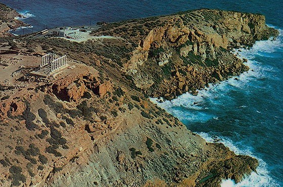 Στην κορυφή του ακρωτηρίου δεσπόζει ο φημισμένος ναός του Ποσειδώνα, θεού της θάλασσας, που φαίνεται από μακριά καθώς προσεγγίζει κανείς την Αθήνα από τη θάλασσα. Κτίστηκε τον 5ο αιώνα π.Χ. επάνω στα ερείπια αρχαιότερου ναού, ενώ λίγο πιο χαμηλά υπήρχε φρούριο, ιερό της θεάς Αθηνάς, και το λιμάνι.