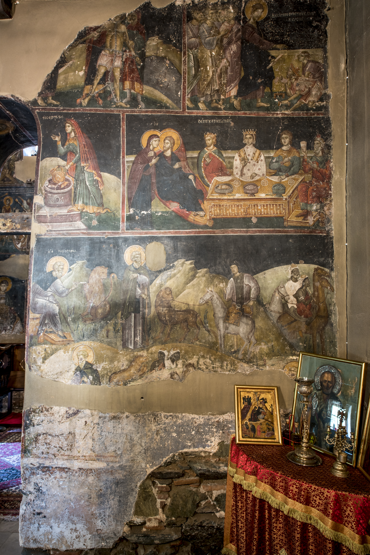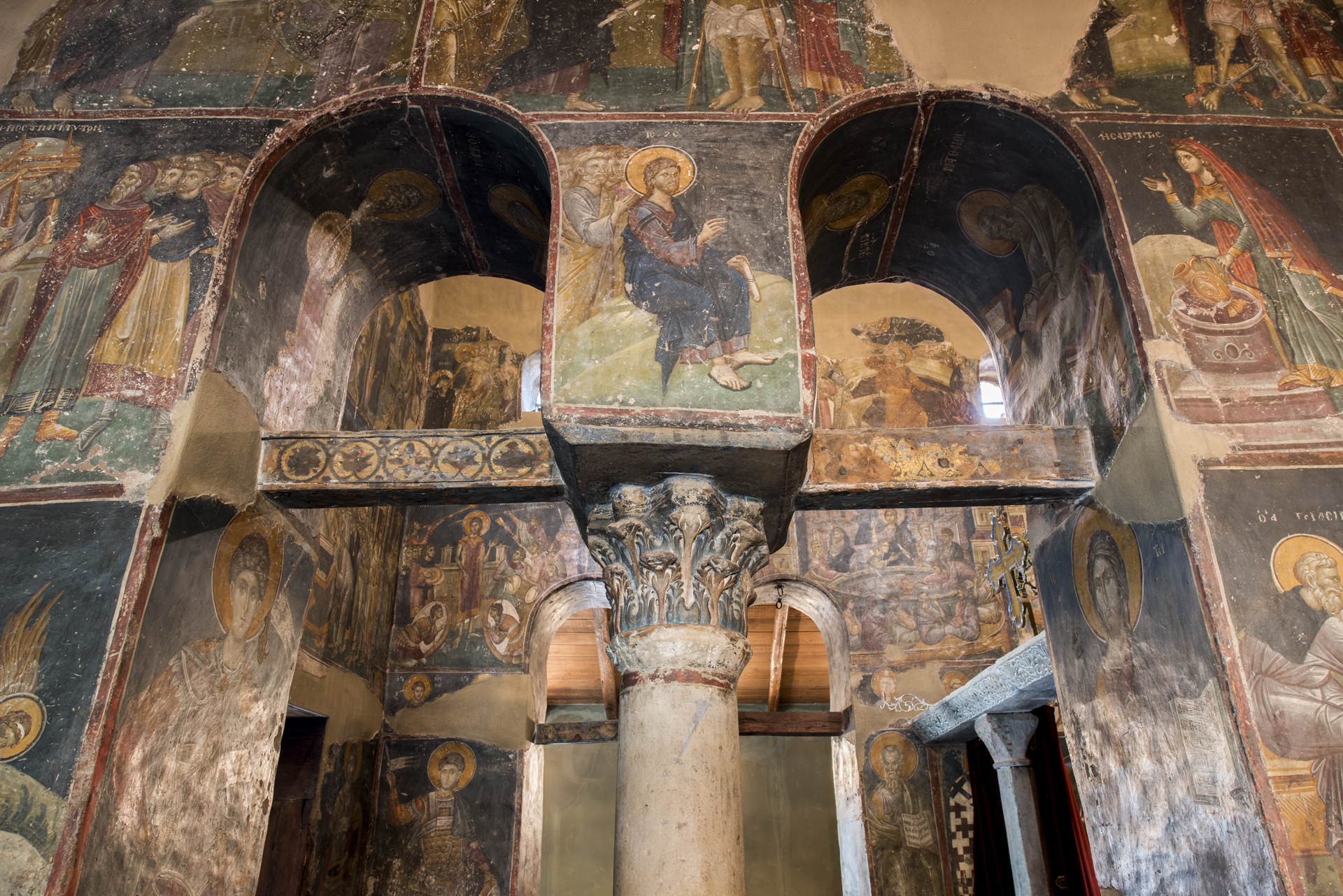 Οι πλούσιες τοιχογραφίες του ναού είναι πραγματικά αριστουργήματα και αποτελούν τις πληρέστερα διατηρούμενες σε σχέση με άλλους ναούς της Θεσσαλονίκης. Χρονικά τοποθετούνται στα έτη 1310-1320. Μεταξύ αυτών, εκτός από τα πολλά θέματα από τον Βίο του Χριστού, ιδιαίτερο ενδιαφέρον έχουν τα θέματα του Ακάθιστου Ύμνου και των Βίων του αγίου Νικολάου και του αγίου Γερασίμου του Ιορδανίτη.