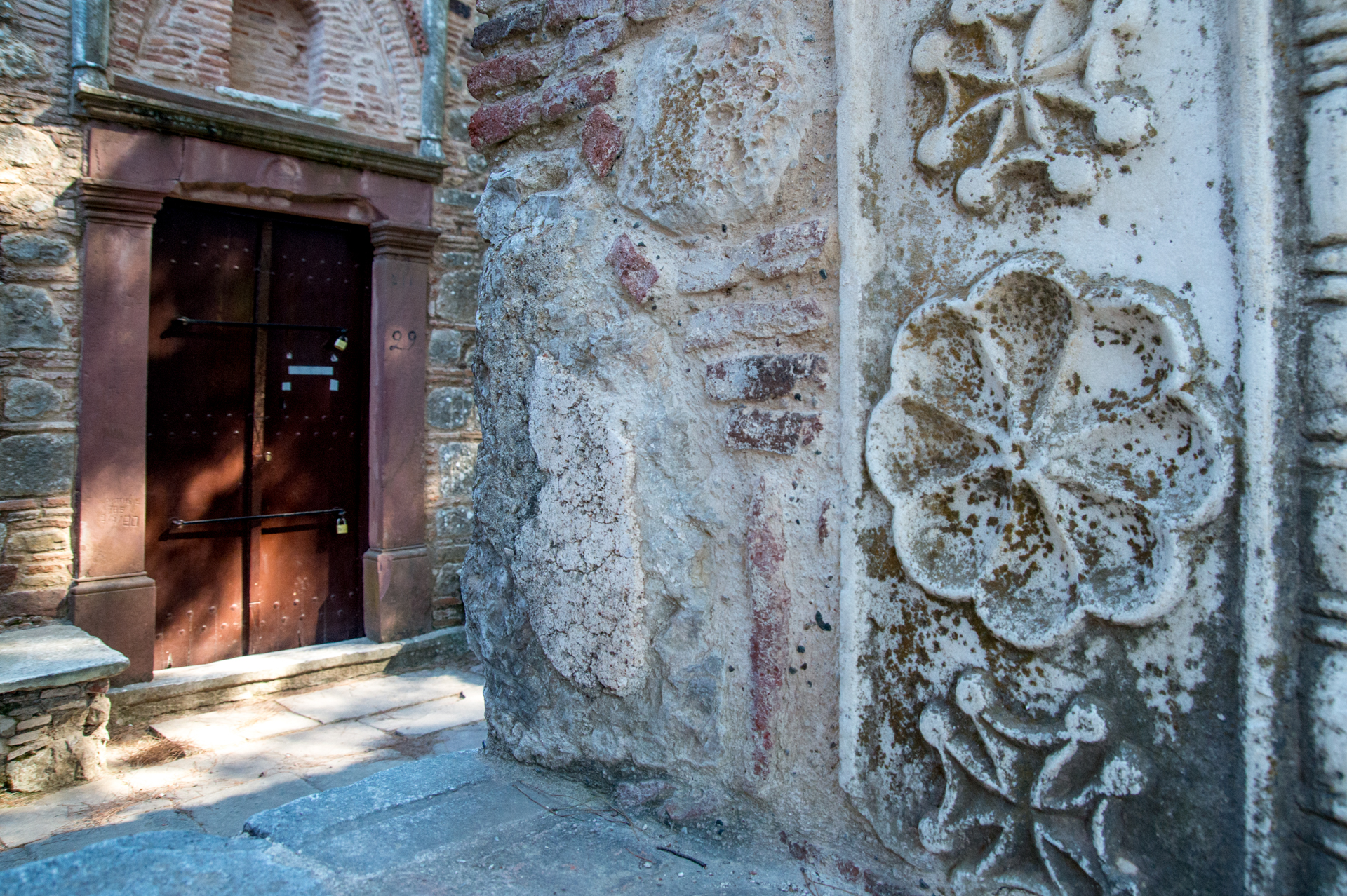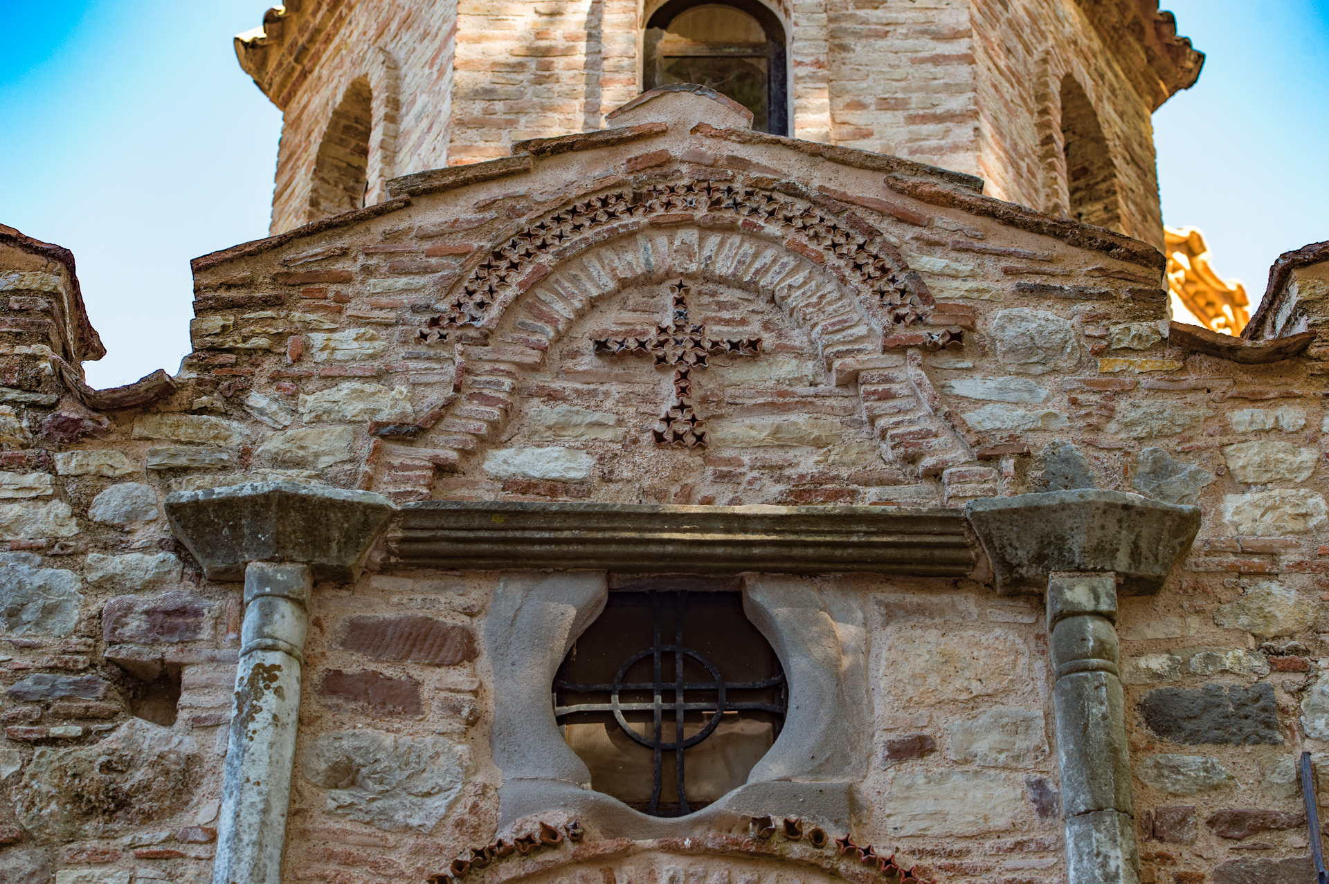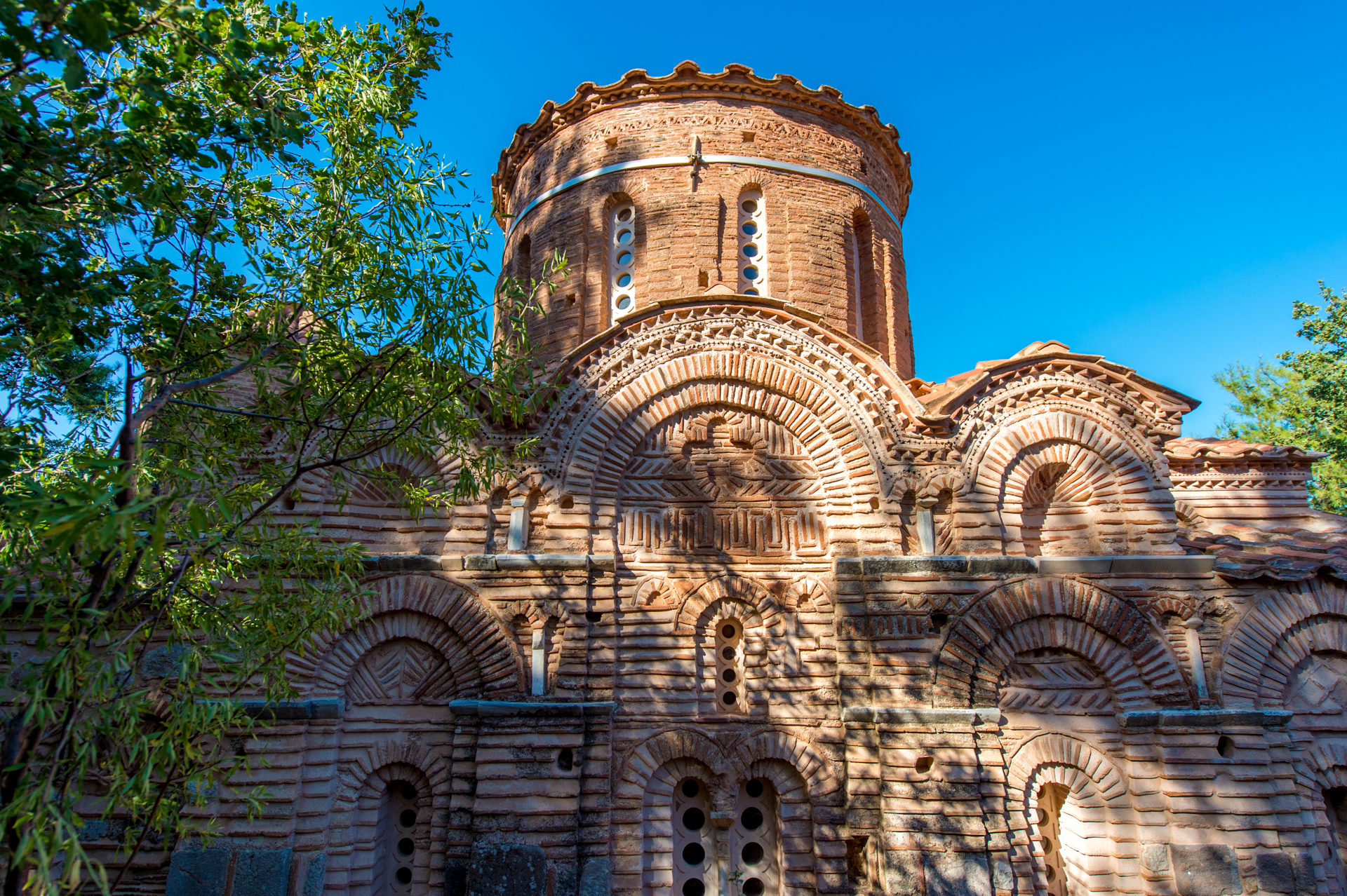 Η τοιχοποιία του είναι κατασκευασμένη με τον χαρακτηριστικό τρόπο της εποχής, δηλαδή με τη λεγόμενη «τεχνική της κρυμμένης πλίνθου», που σε συνδυασμό με τον κεραμοπλαστικό διάκοσμο και αρχιτεκτονικά μέλη σε δεύτερη χρήση προσδίδουν στο σύνολο κομψή και ανάλαφρη όψη. Το 1881 τμήματα του μνημείου καταστράφηκαν από σεισμό και ανακατασκευάσθηκαν το 1884.