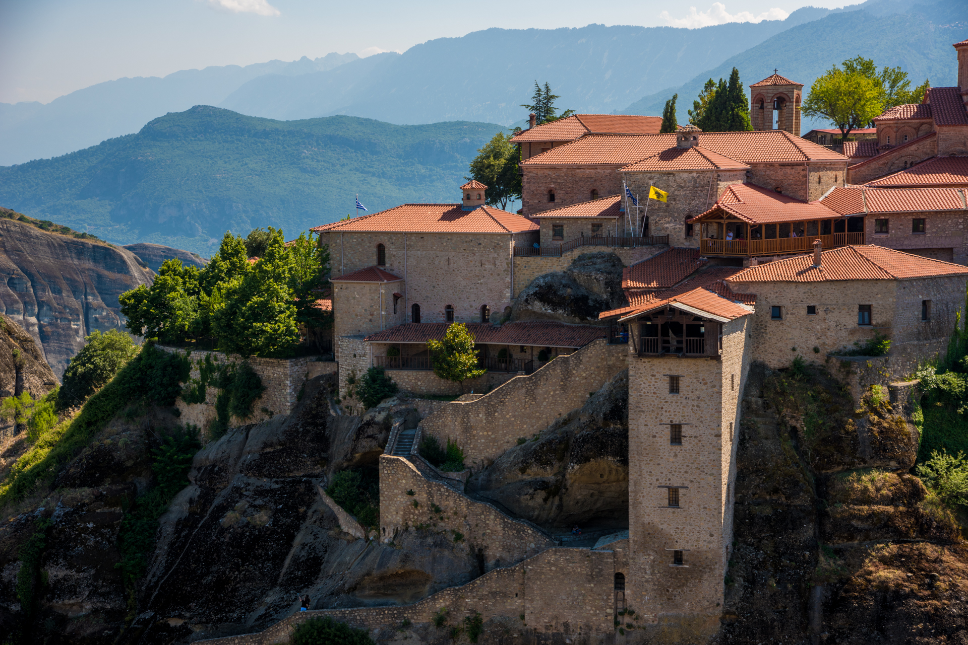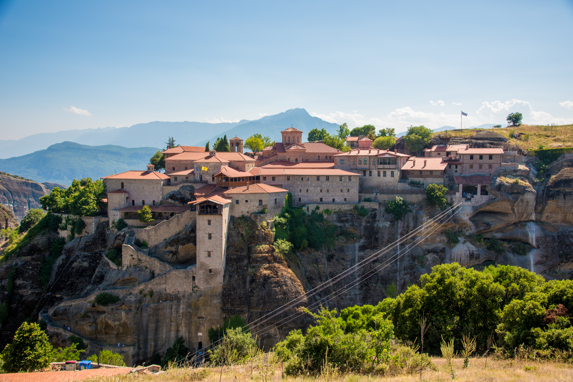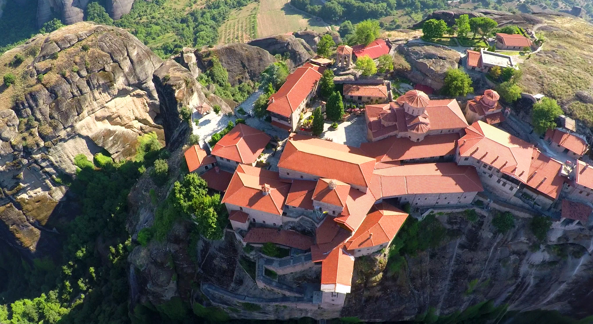 Την κορυφή του πιο ψηλού και ευρύχωρου βράχου των Μετεώρων καταλαμβάνει η μεγαλύτερη και παλαιότερη μονή της περιοχής, η Μονή του Μεγάλου Μετεώρου ή της Μεταμόρφωσης, η ίδρυση της οποίας σηματοδότησε την απαρχή του μετεωρίτικου μοναχισμού.