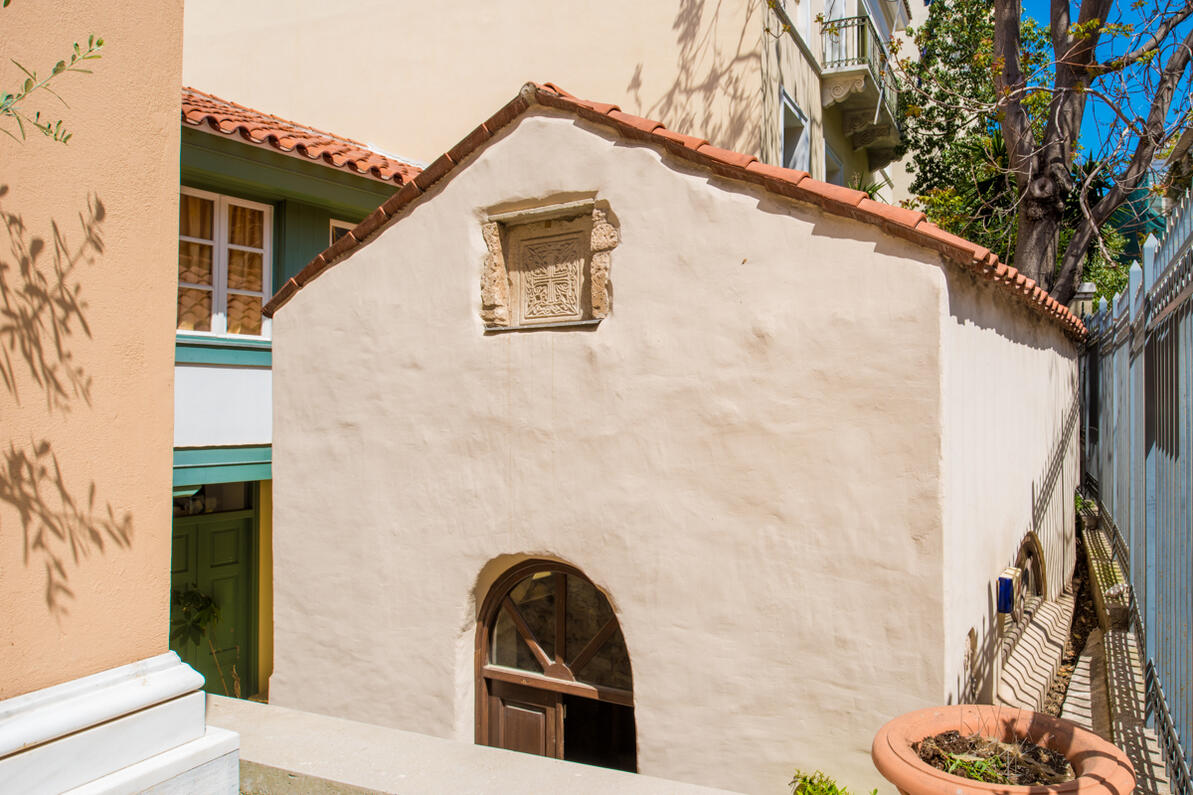 Φαίνεται ότι έχει κτιστεί στον χώρο λουτρού της ρωμαϊκής εποχής και επάνω σε παλαιότερο χριστιανικό ναό, πιθανότατα του 7ου αιώνα όπως δείχνουν γλυπτά που σώζονται στο εσωτερικό του. Στις αρχές του 20ού αιώνα ανήκε στην οικογένεια του Άγγελου Κυπριάδου και υπάρχουν μαρτυρίες ότι εδώ κατέφευγαν οι μαθήτριες για να προσευχηθούν πριν από τις εξετάσεις τους. Αργότερα περιήλθε στον καθηγητή της Θεολογικής Σχολής του Πανεπιστημίου Αθηνών και ακαδημαϊκό Αμίλκα Αλιβιζάτο, ο οποίος το 1968 το κληροδότησε στην Ακαδημία Αθηνών, που με τη σειρά της, το 2002, το παραχώρησε μαζί με το παρακείμενο κτίσμα στην Αρχιεπισκοπή.