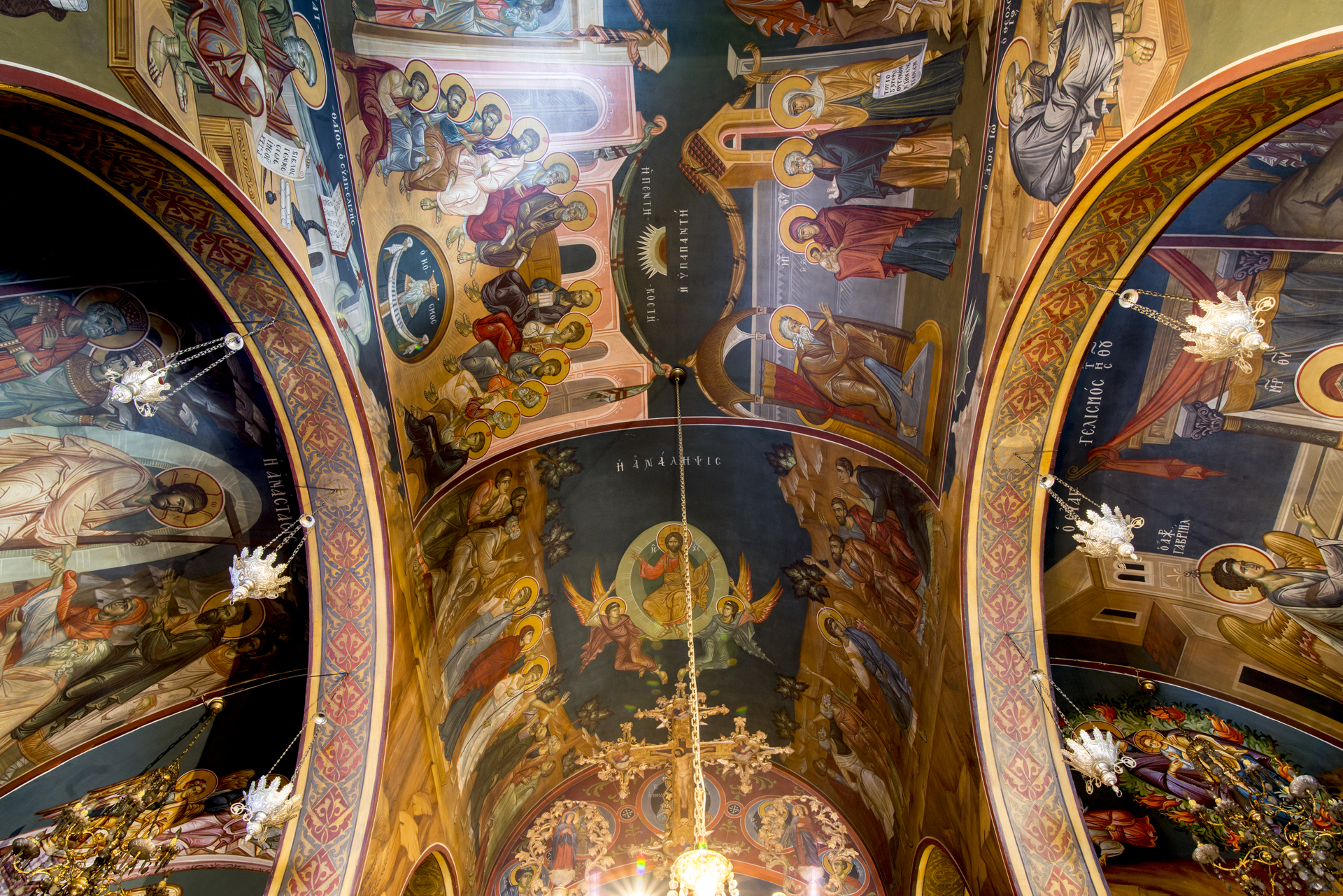Ιδιαίτερης προσοχής χρήζει ο ζωγραφικός διάκοσμος του ναού. Ο Ν. Βασιλόπουλος φιλοτέχνησε τις πρώτες αγιογραφίες στα πλευρικά τμήματα, τον θόλο της Πλατυτέρας και το Ιερό Βήμα (1965-1970). Ο Δημήτρης Κεντάκας, μαθητής του Φώτη Κόντογλου, κόσμησε με τις αγιογραφίες του τους τοξοειδείς τοίχους και την οροφή.