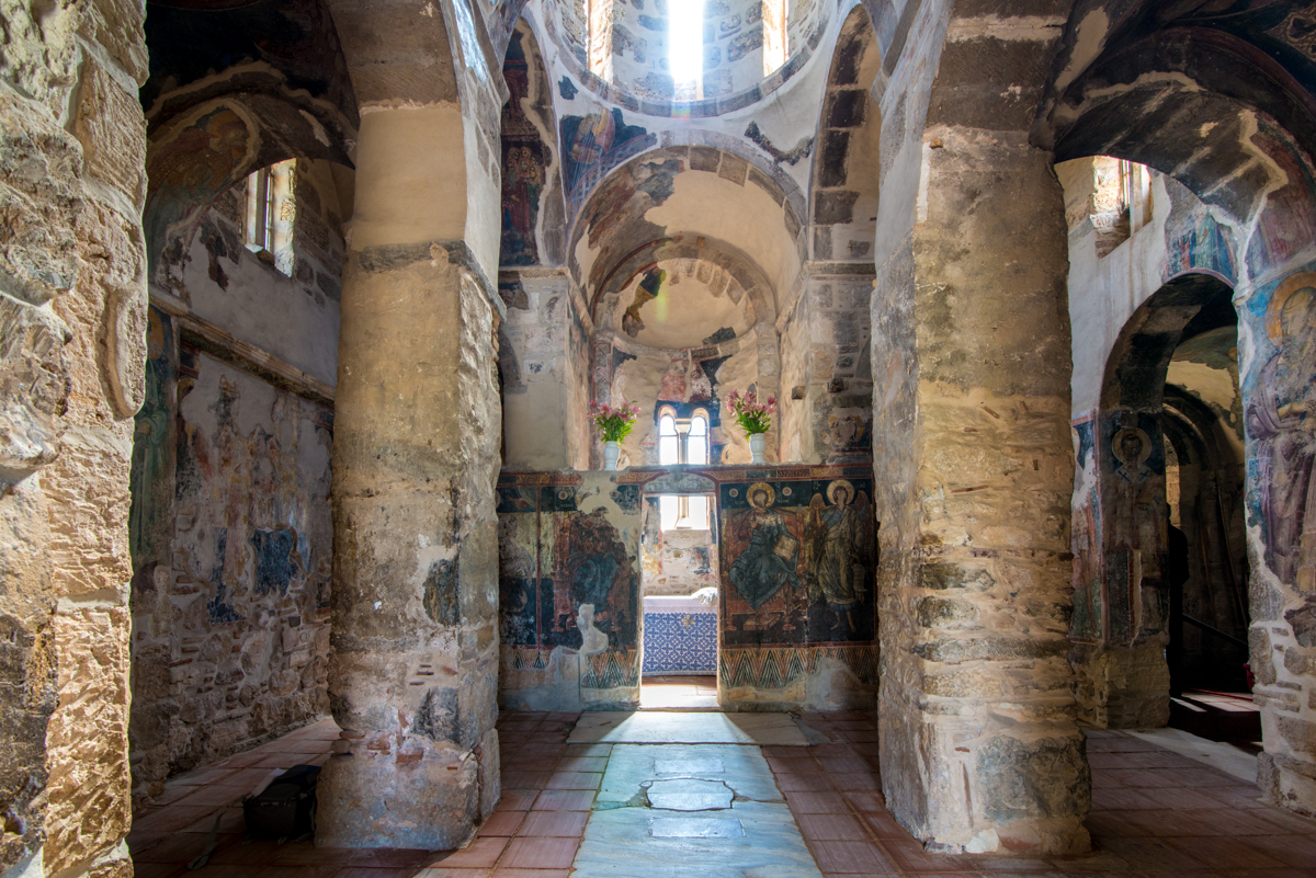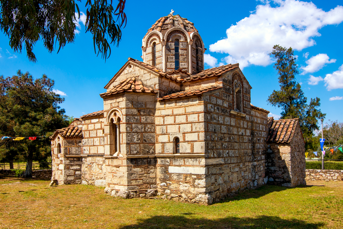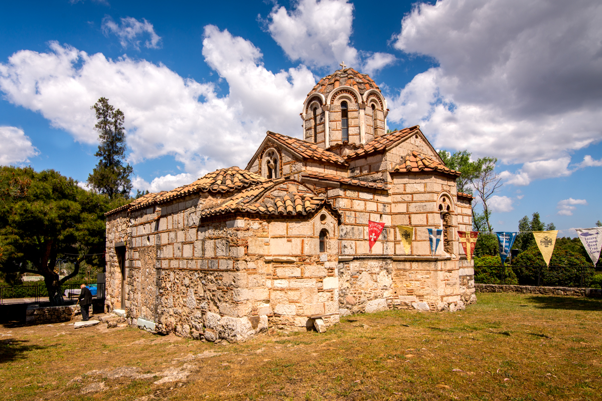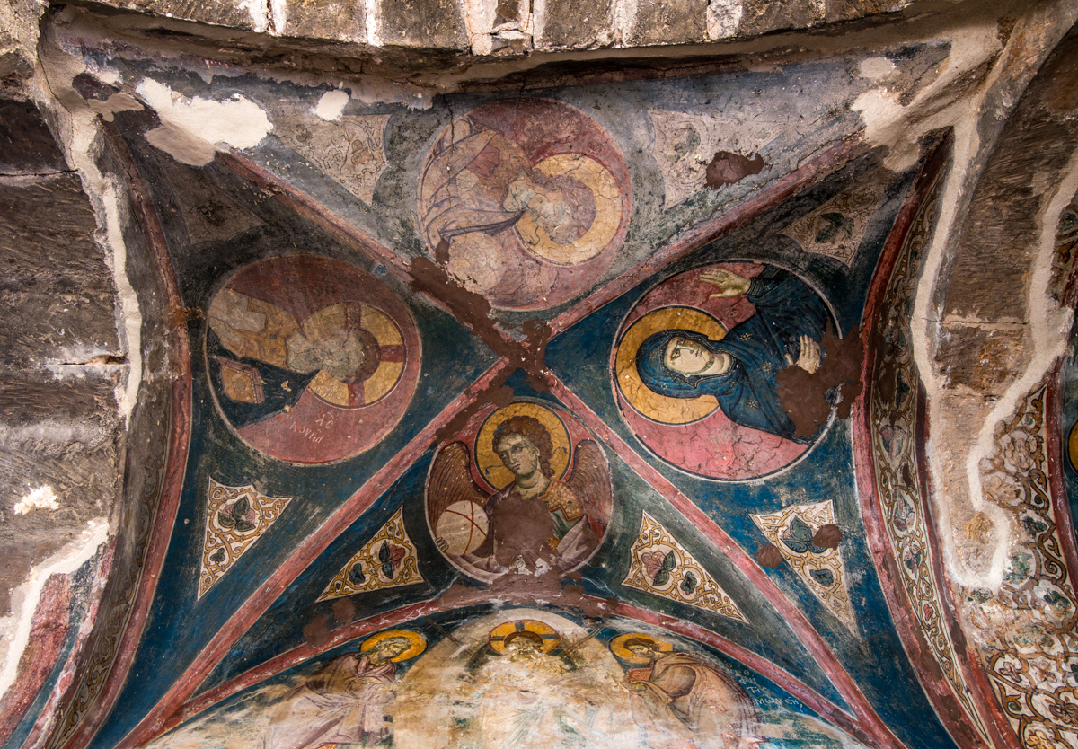 Το εσωτερικό του ναού ήταν διακοσμημένο με τοιχογραφίες, εξαίρετο δείγμα τέχνης Αθηναίων ζωγράφων του τέλους του 13ου αιώνα, οι περισσότερες από τις οποίες διατηρούνται μέχρι σήμερα. Στον τρούλο δεσπόζει ο Παντοκράτορας, τον οποίο ο λογοτέχνης και αγιογράφος Φώτης Κόντογλου θαύμαζε ως μοναδικό τη ζωγραφική του τέχνη. Χαμηλά στους τοίχους, στις καμάρες και στα τύμπανα εικονίζονται ολόσωμοι άγιοι, ασκητές, ιεράρχες και προφήτες, σε σκηνές από την Παλαιά και την Καινή Διαθήκη. Στον νάρθηκα εικονίζονται, μεταξύ άλλων, σκηνές από τον βίο της Θεοτόκου και από το μαρτύριο του Αγίου Γεωργίου. Στους τοίχους του ναού μπορεί κανείς να δει αρκετές πρόχειρα χαραγμένες επιγραφές. Πρόκειται για ικεσίες που χάραξαν κατά καιρούς οι πιστοί.