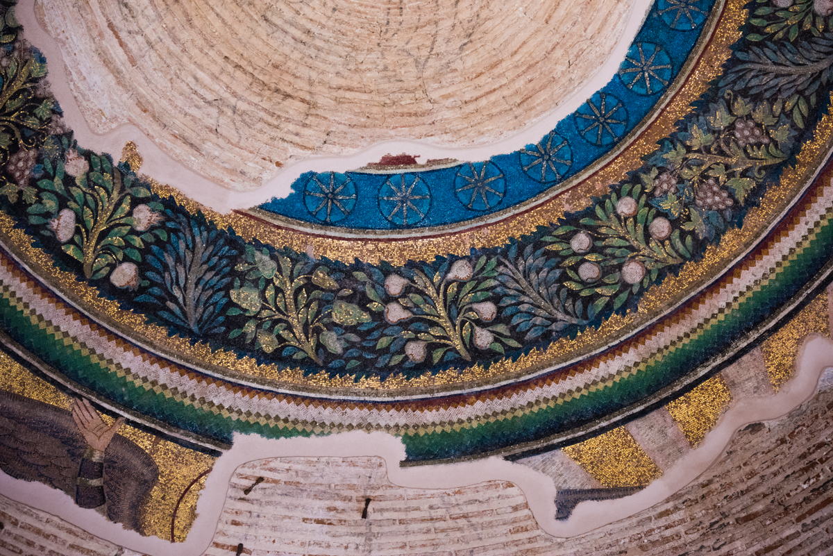 Ιδιαίτερο ενδιαφέρον έχουν τα εξαιρετικής ποιότητας ψηφιδωτά, που θεωρούνται τα ωραιότερα της παλαιοχριστιανικής περιόδου. Από τον σωζόμενο διάκοσμο στον θόλο προκύπτει ότι απεικονίζεται το θέμα της Δευτέρας Έλευσης του Χριστού. Καλύτερα διατηρούνται στο κάτω μέρος οι άγιοι, οι οποίοι προβάλλονται μπροστά από αρχιτεκτονικό σκηνικό. Στις καμάρες των κογχών απεικονίζονται διακοσμητικά θέματα.
