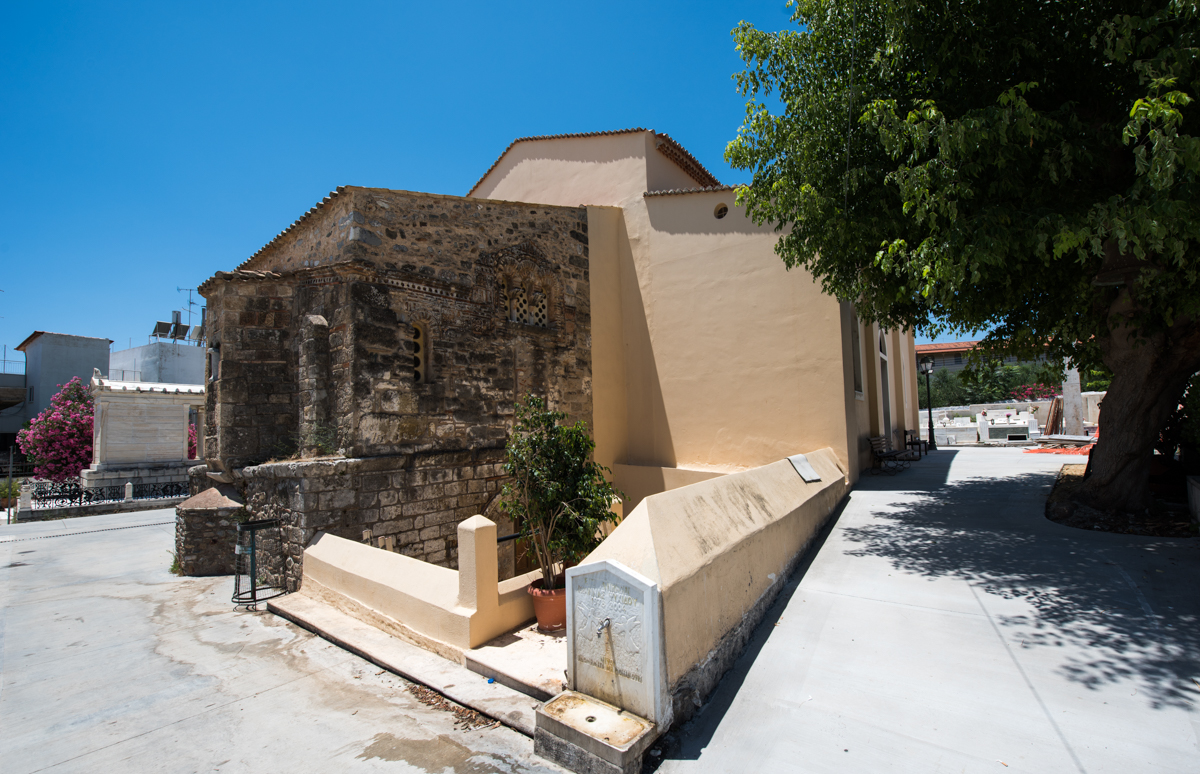 Χρονολογείται στον 12ο ή στις αρχές του 13ου αιώνα. Στην αρχική του μορφή ήταν διώροφος, δηλαδή περιλάμβανε δύο ανεξάρτητα επάλληλα κτίσματα, στοιχείο συνηθισμένο σε ναούς νεκροταφείων. Καταστράφηκε στη μεταβυζαντινή περίοδο και υπέστη εκτεταμένες οικοδομικές επεμβάσεις και μετατροπές, ιδίως κατά τη Β΄ Ενετοκρατία (1685-1715), που έχουν αλλοιώσει την εμφάνιση και τη δομή του. Τον 19ο αιώνα στη δυτική πλευρά του οικοδομήθηκε μια μεγάλη τρίκλιτη βασιλική και ο πρώτος ναός πήρε τη θέση του ιερού της. Το μνημείο διαμορφώθηκε στην τελική, σημερινή του μορφή στα μέσα του 20ού αιώνα.