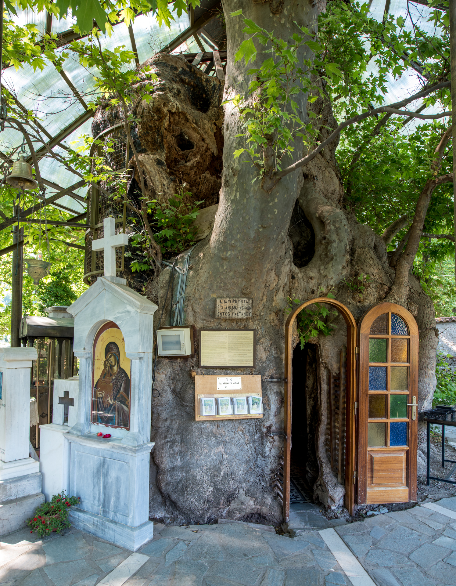 Πρόκειται για πολύ μικρό ναό αφιερωμένο στο Γενέσιο της Θεοτόκου, που έχει διαμορφωθεί μέσα στο κοίλωμα ενός τεράστιου αιωνόβιου πλατάνου. Το δέντρο έχει περίμετρο γύρω στα 17 μ. στη βάση και ύψος 25 μ., και με το πέρασμα του χρόνου έχει δημιουργήσει σύμπλεγμα με άλλα δύο μεγάλα πλατάνια. Ο χρόνος ίδρυσης του ναού δεν είναι γνωστός, η παράδοση για την ιστορία του, όμως, συνδέεται με τη Μονή Μεγάλου Σπηλαίου και την εικόνα της Παναγίας Μεγαλοσπηλαιώτισσας.