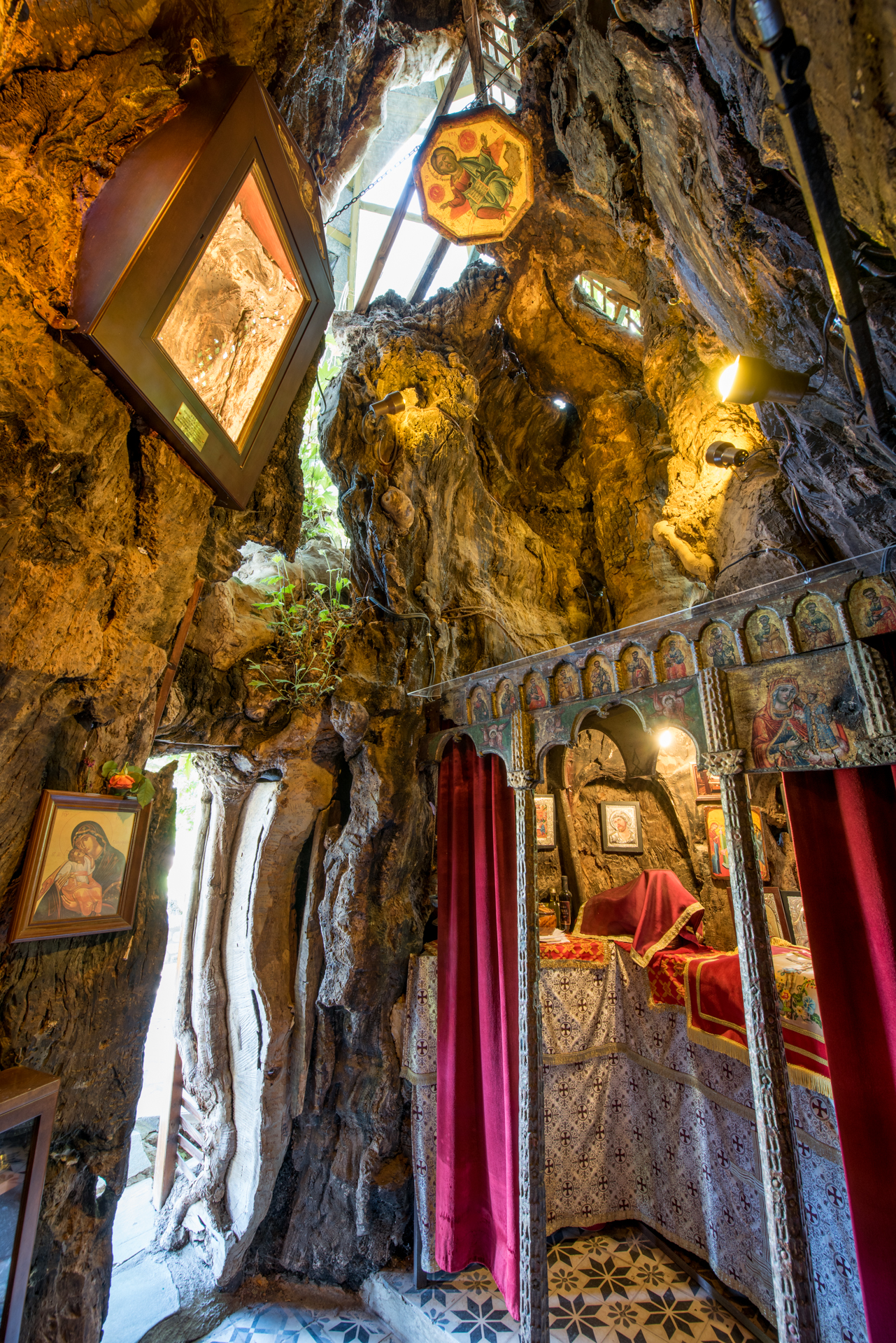 Ο ναός έχει μήκος γύρω στα 8 μ., πλάτος περίπου 3 μ. και χωρητικότητα 15 ατόμων στον κυρίως ναό ή 20 ατόμων σε όλο τον χώρο. Μικρή είσοδος ανοίγεται στη βορειοδυτική πλευρά του, και ένα παράθυρο ακριβώς απέναντί της. Στο εσωτερικό του υπάρχει μικρό τέμπλο με δύο κίονες που σχηματίζουν την Ωραία Πύλη, ενώ σε ύψος περίπου 3 μ. από το έδαφος δεσπόζει η εικόνα της Παναγίας.