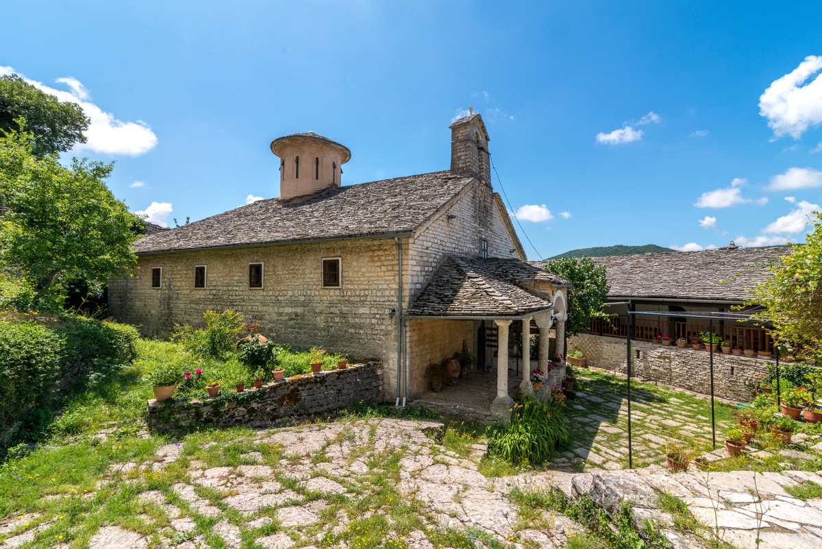 Στην είσοδο του γραφικού χωριού Άνω Πεδινά, στο Ζαγόρι, στην άκρη του Κάτω Μαχαλά, δεσπόζει η εντυπωσιακή Μονή της Ευαγγελίστριας, εξαίρετο δείγμα της παραδοσιακής αρχιτεκτονικής των Ζαγοροχωρίων.