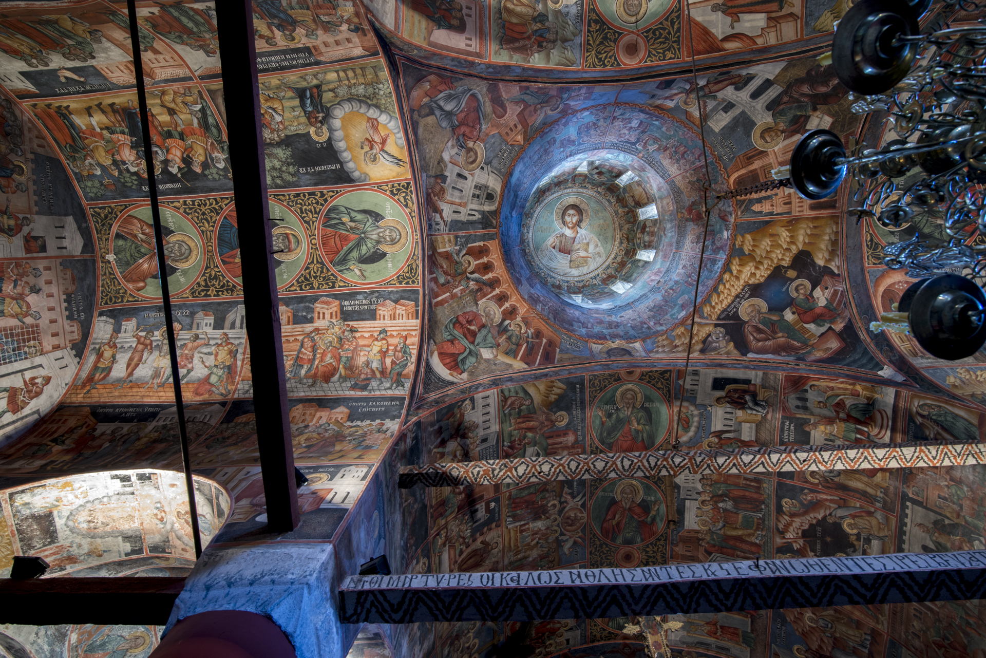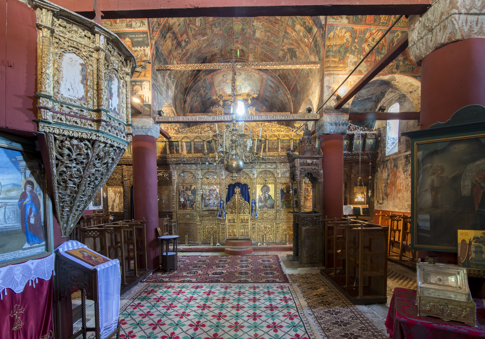 Αξιοσημείωτη είναι και η απεικόνιση αρχαίων Ελλήνων φιλοσόφων και ιστορικών στο αριστερό κλίτος, σε μικρό εσωτερικό τρούλο, ενώ ενδιαφέρον παρουσιάζουν, επίσης, το τέμπλο, ο επισκοπικός θρόνος και ο άμβωνας, θαυμάσια έργα ξυλογλυπτικής των αρχών του 19ου αιώνα. Στη μονή υπάρχουν αξιόλογες φορητές εικόνες του 18ου αιώνα, ένα Ευαγγέλιο με αργυρή επένδυση και δύο λειψανοθήκες του 19ου αιώνα.