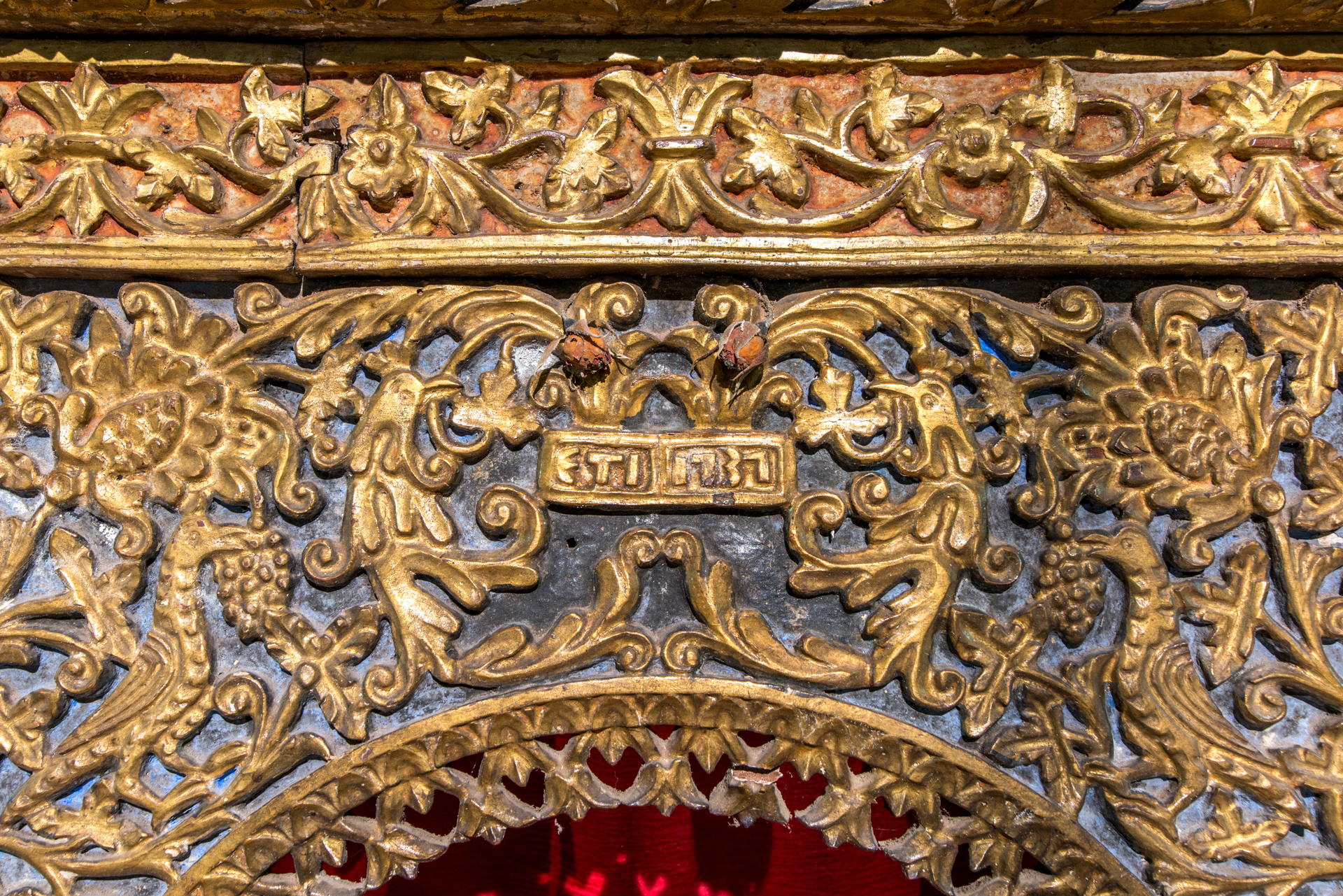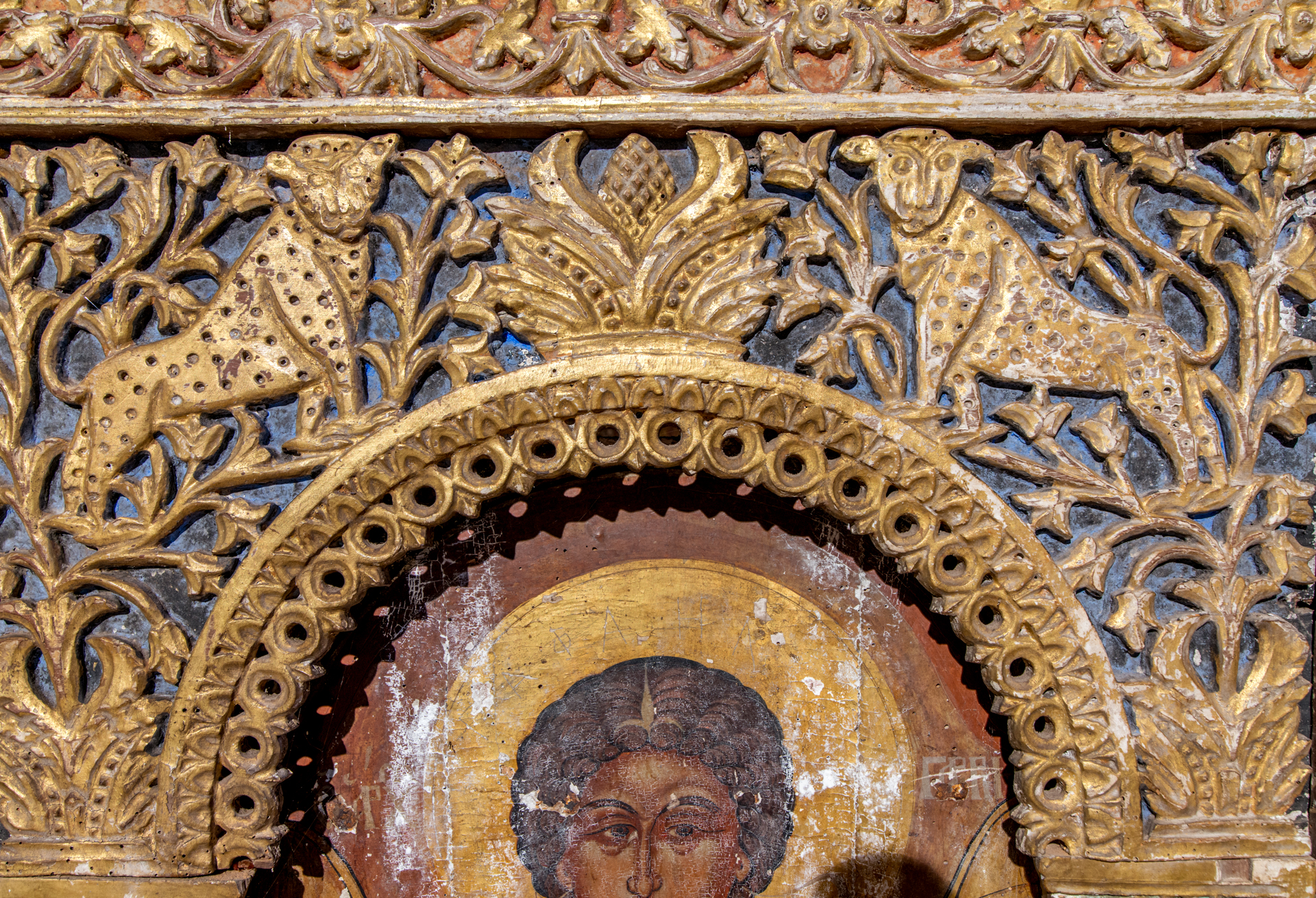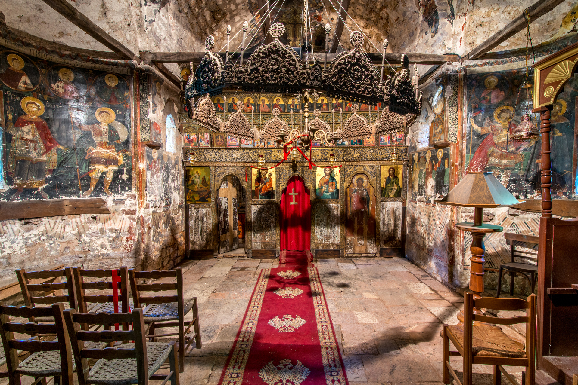 Στο εσωτερικό του διατηρούνται ενδιαφέρουσες τοιχογραφίες βυζαντινής τεχνοτροπίας, που ολοκληρώθηκαν το 1732, από τους ίδιους κτήτορες, όταν επίσκοπος ήταν ο Διονύσιος από τα Ιωάννινα. Αξιόλογο είναι το ξυλόγλυπτο τέμπλο, έργο του 1737, και οι εικόνες, που χρονολογούνται στο 1738. Αριστούργημα της ξυλογλυπτικής τέχνης είναι και ο πολυέλαιος, που θυμίζει αντίστοιχα έργα σε μονές του Αγίου Όρους, καθώς και το σμαλτοκέντητο ψαλτήρι - αναλόγιο με ελεφαντόδοντο.