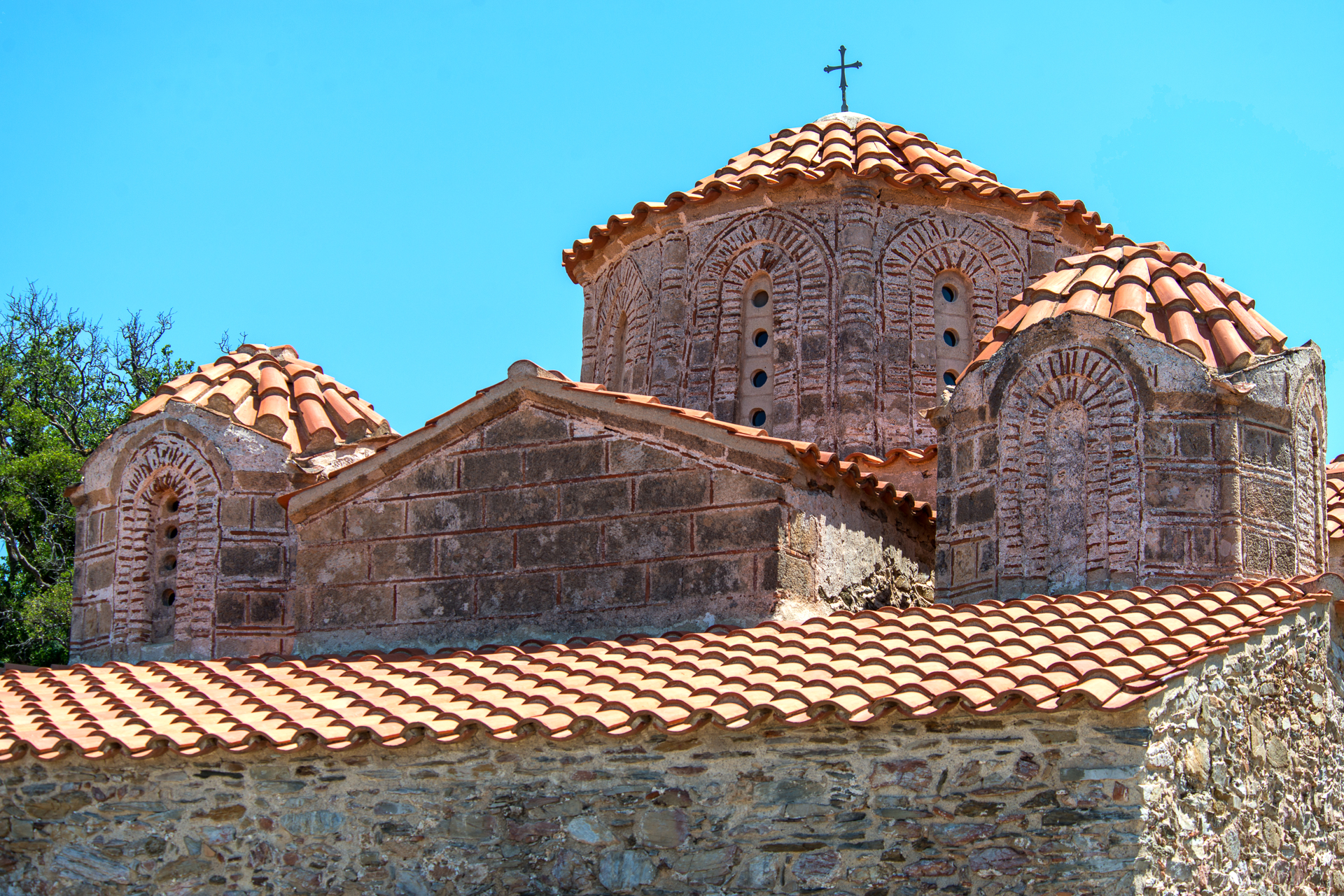 Ο ναός είναι σχεδόν τετράγωνος σε κάτοψη, σταυροειδής εγγεγραμμένος, με μεταγενέστερο νάρθηκα και ο σχεδιασμός του χαρακτηρίζεται από ακρίβεια και συμμετρία. Έχει πέντε τρούλους, ένα κεντρικό που στηρίζεται σε τέσσερις κίονες εσωτερικά, και τέσσερις μικρότερους στα γωνιακά διαμερίσματα. Αυτή η διαμόρφωση, σε συνδυασμό με την πλινθοπερίκλειστη κατασκευή των τοίχων, αμελέστερη στο κατώτερο τμήμα, και ορισμένα ακόμη δομικά χαρακτηριστικά, παραπέμπουν σε επιδράσεις από την παράδοση της Δύσης, συνδυασμένες με στοιχεία της παραδοσιακής βυζαντινής αρχιτεκτονικής. Στο εσωτερικό του διατηρούνται μόνο τμήματα του τοιχογραφικού διακόσμου που κάλυπτε αρχικά όλες τις επιφάνειες, έργο καλής ποιότητας, χαρακτηριστικό της παλαιολόγειας τέχνης. Το ιερό χωρίζεται από τον κυρίως ναό με κτιστό τέμπλο στο οποίο υπάρχουν εσοχές για την τοποθέτηση φορητών εικόνων.