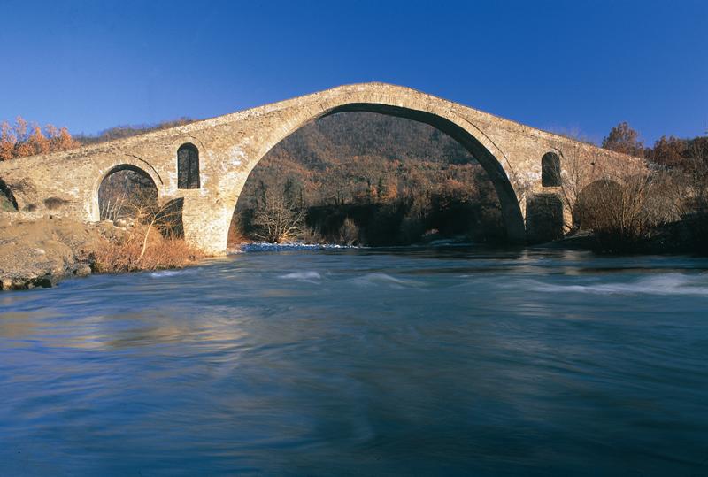 Στην περιοχή των Γρεβενών βρίσκονται τα πιο εντυπωσιακά πέτρινα γεφύρια της Μακεδονίας, κατασκευασμένα τον 18ο και 19ο αιώνα στους κεντρικούς δρόμους που οδηγούσαν στην Ήπειρο και στη Θεσσαλία. Το μεγαλύτερο, με μήκος 84 μ., είναι το γεφύρι του Σπανού, ενώ αυτό με το μεγαλύτερο τόξο, που φθάνει σε ύψος τα 15 μ., είναι του Αζίζ-αγά, και τα δύο κοντά στα χωριά Κοσμάτι και Κηπουριό. Εντυπωσιακό είναι το γεφύρι της Πορτίτσας, κοντά στο χωριό Σπήλαιο, του Ζιάκα, κοντά στο χωριό που πήρε το όνομά του από τον ήρωα Θεόδωρο Ζιάκα, και του Δοτσικού, το μοναδικό που βρίσκεται μέσα σε οικισμό.