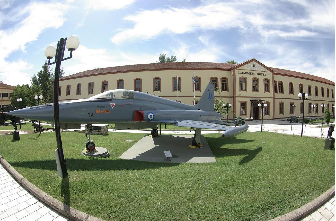 Στο προαύλιο του μουσείου εκτίθενται εντυπωσιακά στρατιωτικά οχήματα και αεροπλάνα που έχουν χρησιμοποιηθεί από τον ελληνικό στρατό.