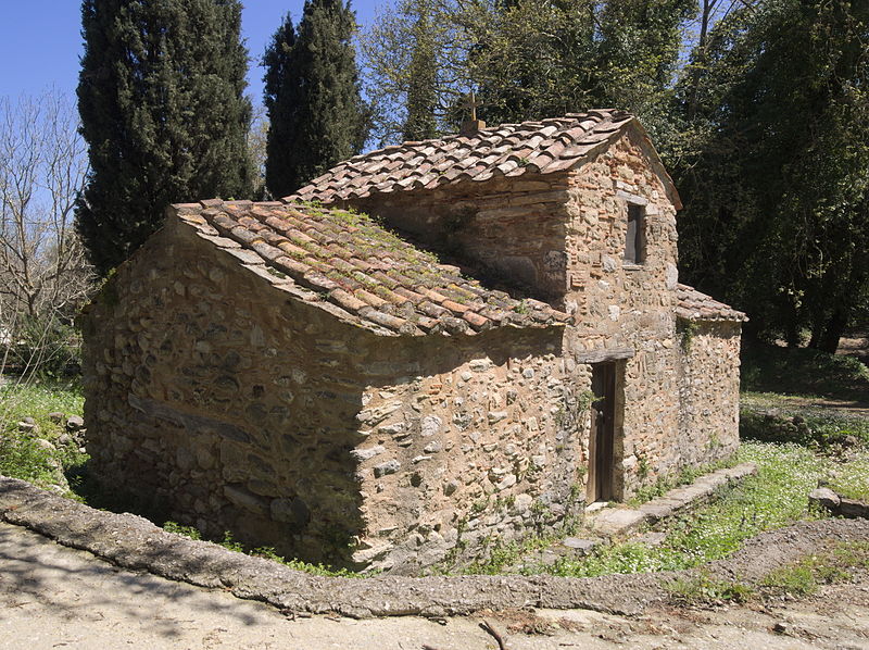 Its interior is richly decorated with important wall paintings, which according to most of the researchers can be divided into three stages. The earliest of them dates from the second half of the 14th century and is an expression of the more “official” style of the Palaeologan era. The arch of the altar area depicts the Pantocrator, while in front of the screen, on the southern and northern wall dominate the two supernatural figures of Agios Nikolaos and Agios Vasileios. At the semi-cylindrical part of the transverse barrel-vault the Second Coming is depicted, a subject matter that is related to the cemetery – burial character that the church must have had at an earlier period. Characteristic is the Altar where they used a marble plate from an ancient building for its construction.
