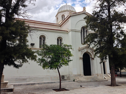 The church of Agios Georgios is located at Vasilissis Sofias avenue, next to the Metro station “Evangelismos”. It is the church of the Rizarios Ecclesiastical School, which was founded in 1841 by the businessmen brothers, Manthos and George Rizaris. In 1950 the school was transferred to Chalandri, but the church remained at its original location.