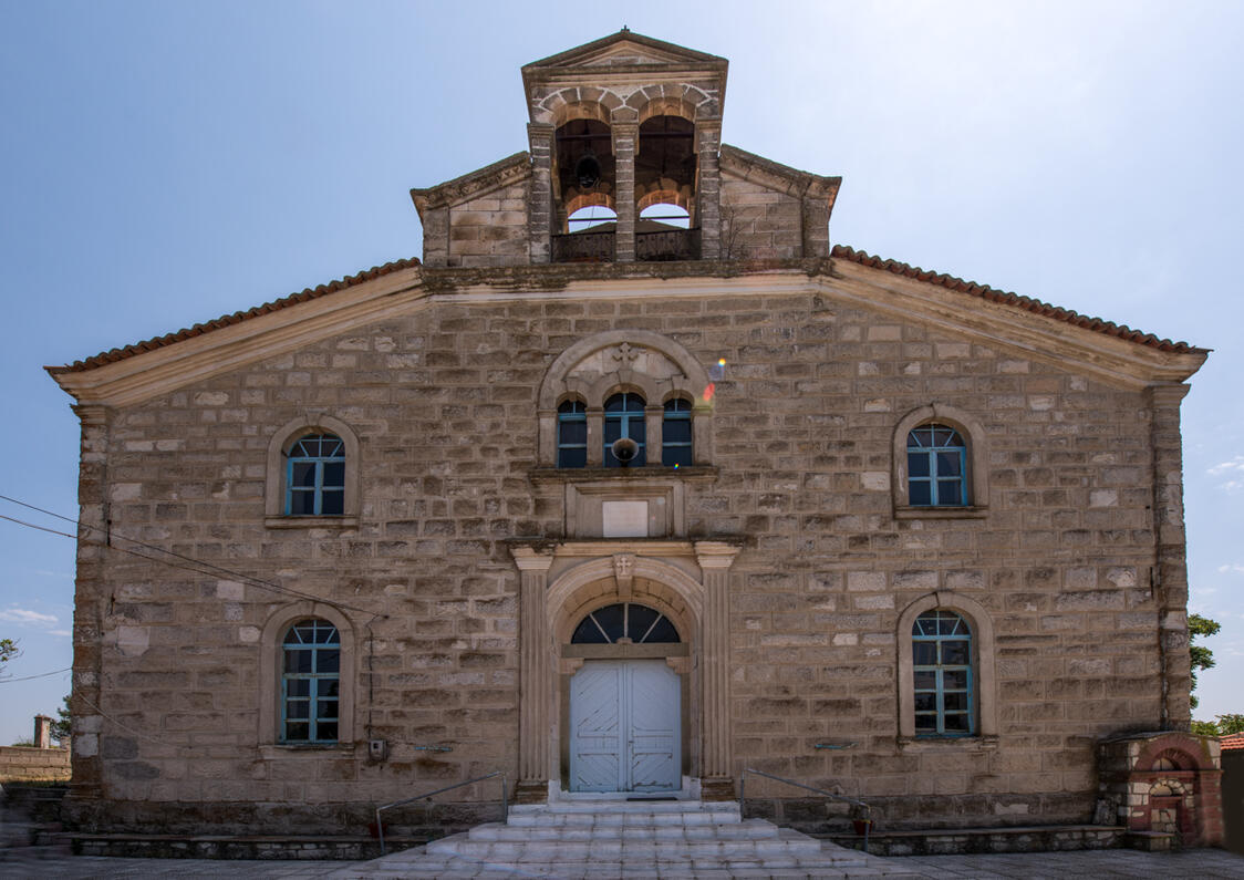 Its construction started in 1900, during the Turkish occupation, and its inauguration took place on the 8th of September 1902. It belongs to the type of the three-aisled, wooden-roofed basilica, without a dome, with an elegant bell tower over the entrance. Its architecture is, generally, frugal but remarkable. Its walls are traditionally built with stones, from the famous craftsmen of Lefkimi, which have given the characteristic form to the monuments. Impressive is the façade, with the triple-light window over the elaborate entrance, while the large areas of the walls have a more light aspect with the two series of arched windows. The interior of the church is decorated with icons from the beginning of the 20th century, the remarkable works of important painters from Andrianoupolis and the wider are of Thrace.