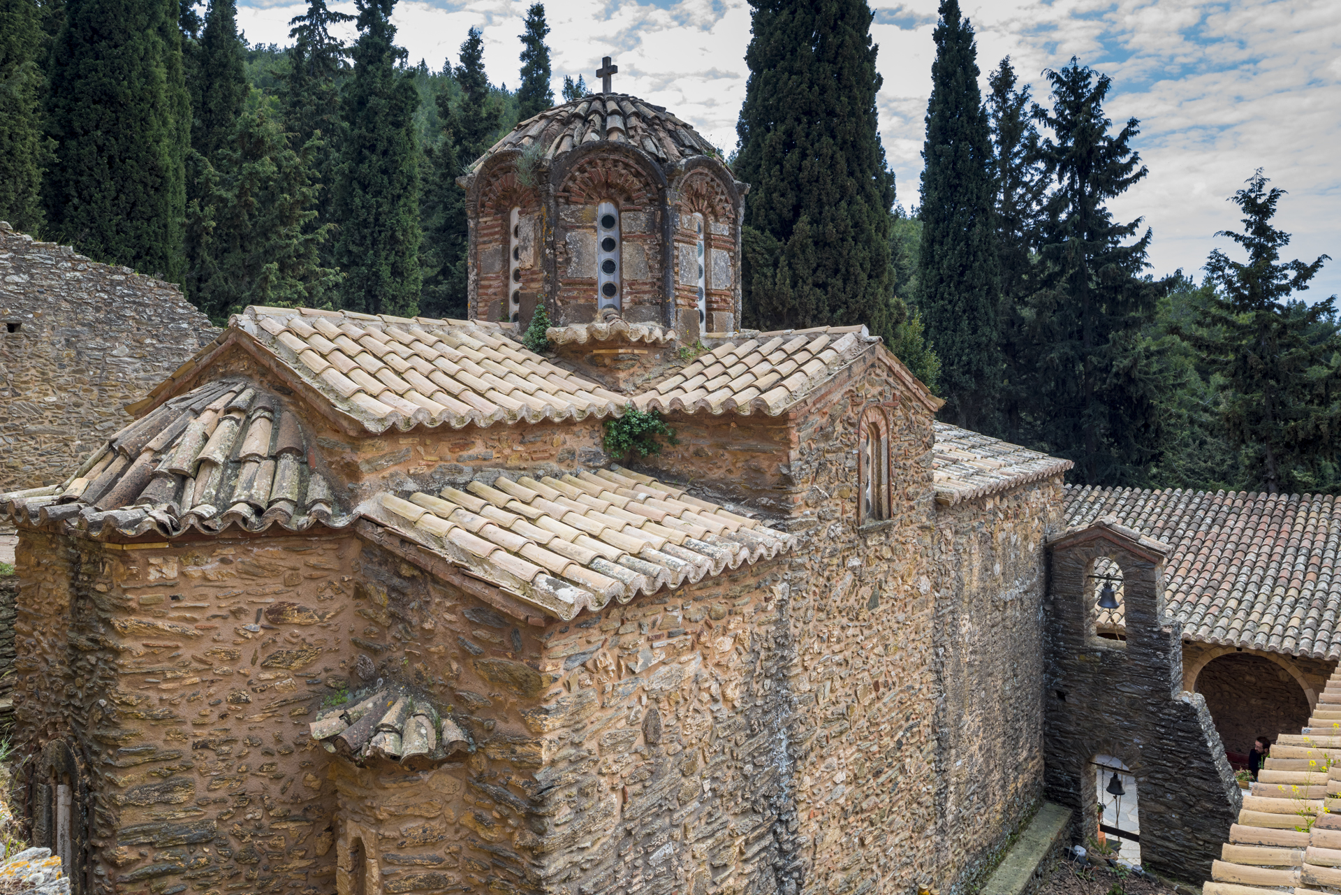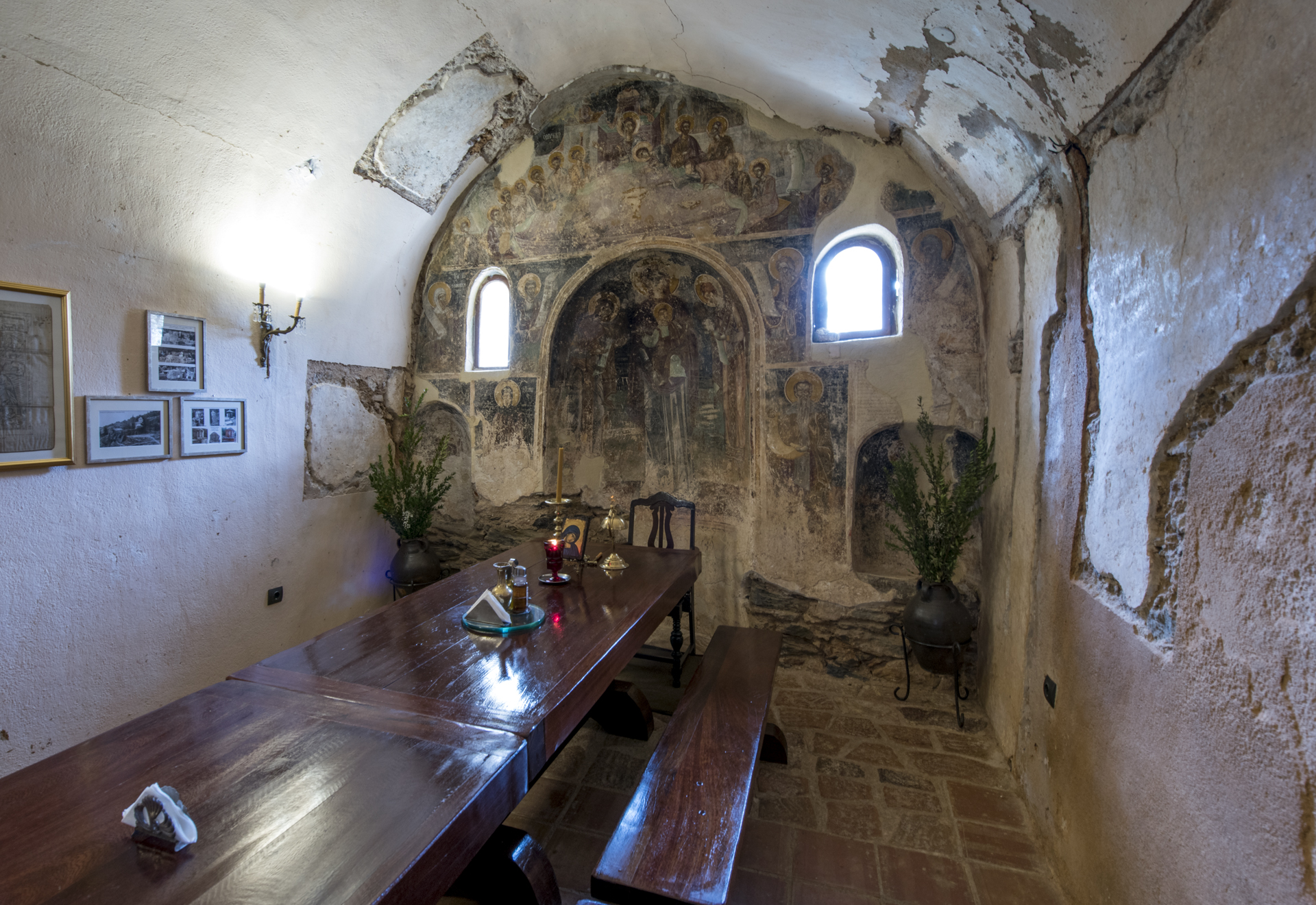 Dans le complexe, à part le catholicon, sont conservés les cellules rénovées, le réfectoire et à l’extérieur la fontaine.